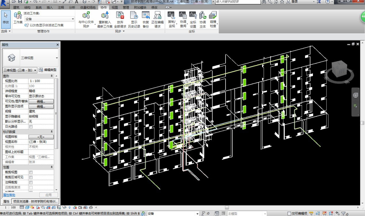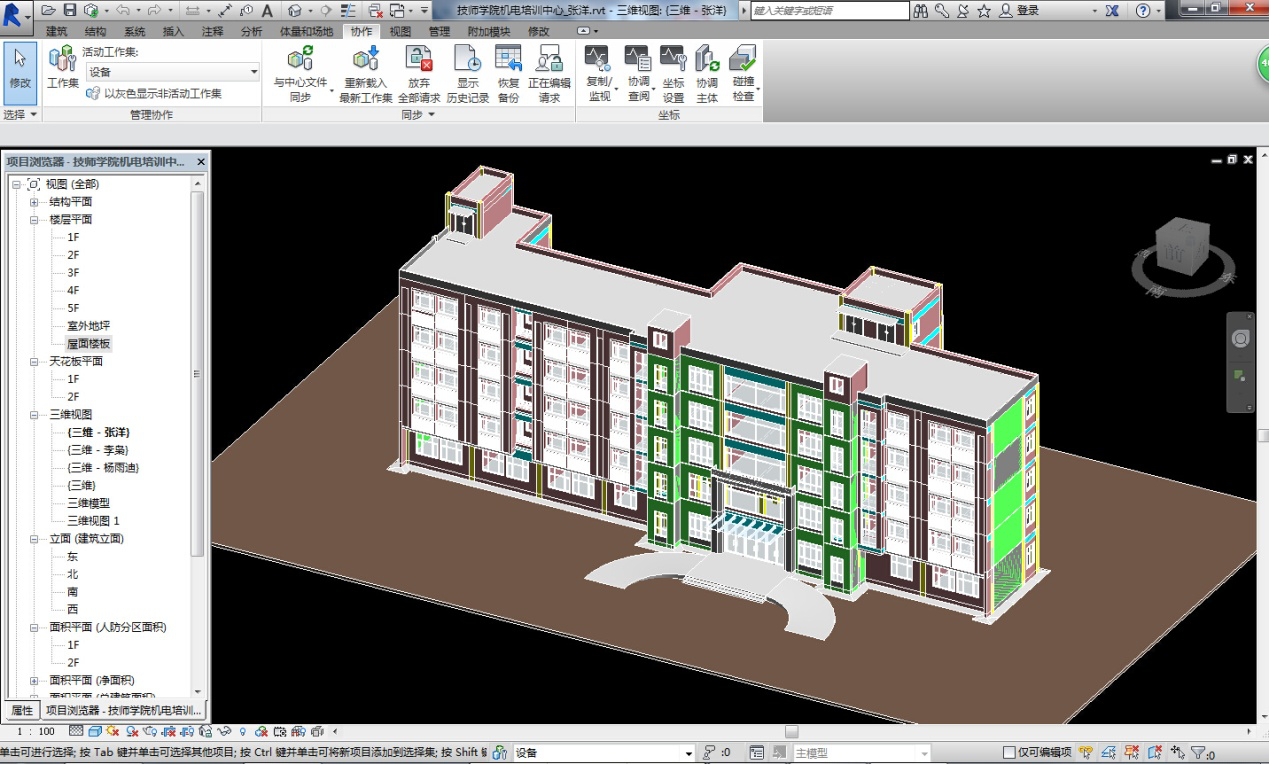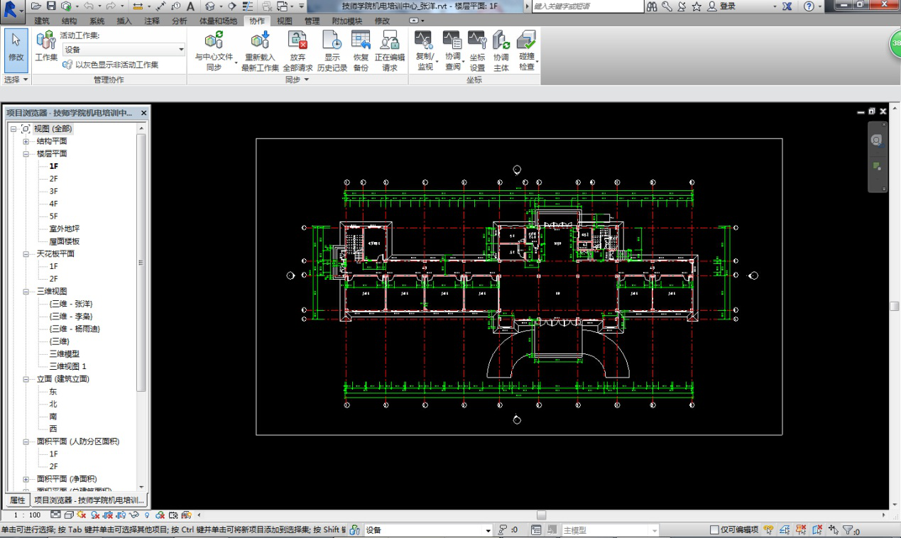 2、 小組成立以來,積極參與各種與BIM相關(guān)的學(xué)習(xí)與活動,整體掌握了Revit設(shè)計軟件,為了使小組的學(xué)習(xí)及研究能真正應(yīng)用到實際工作和工程中,小組各專業(yè)成員利用業(yè)余時間使用Revit完成了對已出施工圖項目的重新設(shè)計。