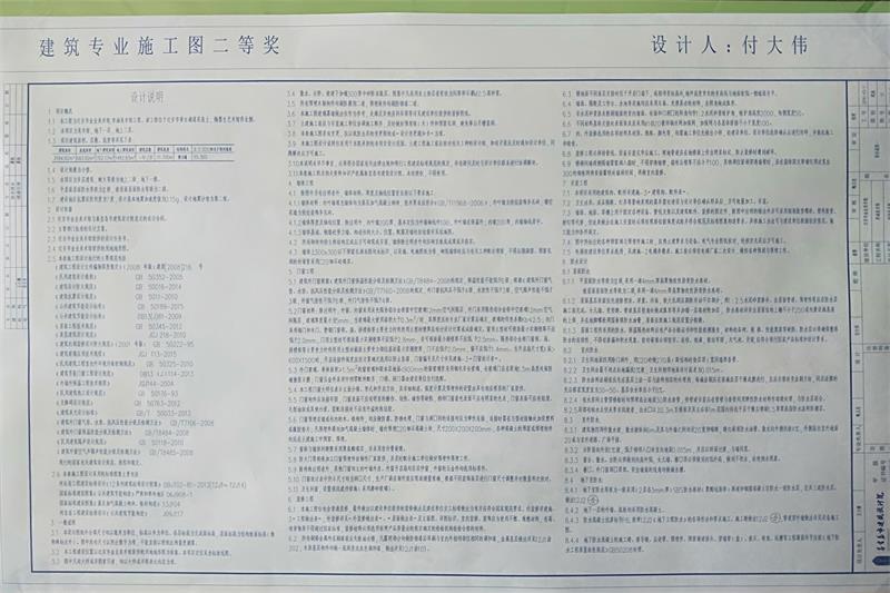 上圖為建筑專(zhuān)業(yè)二等獎(jiǎng)獲得者 付大偉 參選施工圖